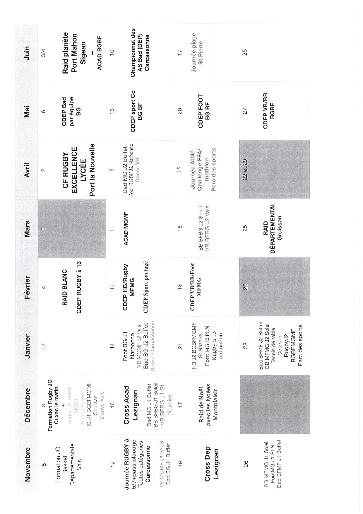 Planning des compétitions sportives