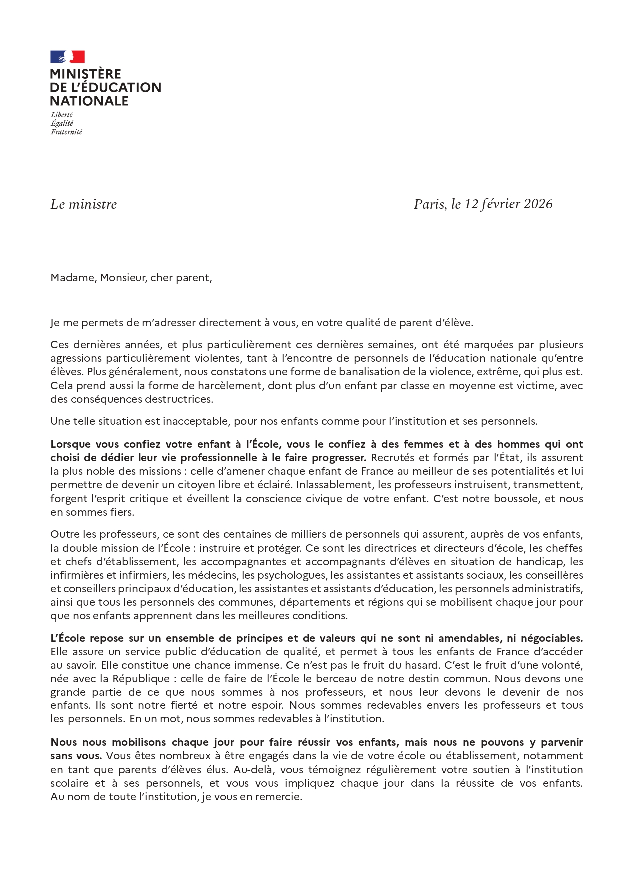 A L'ATTENTION DES PARENTS